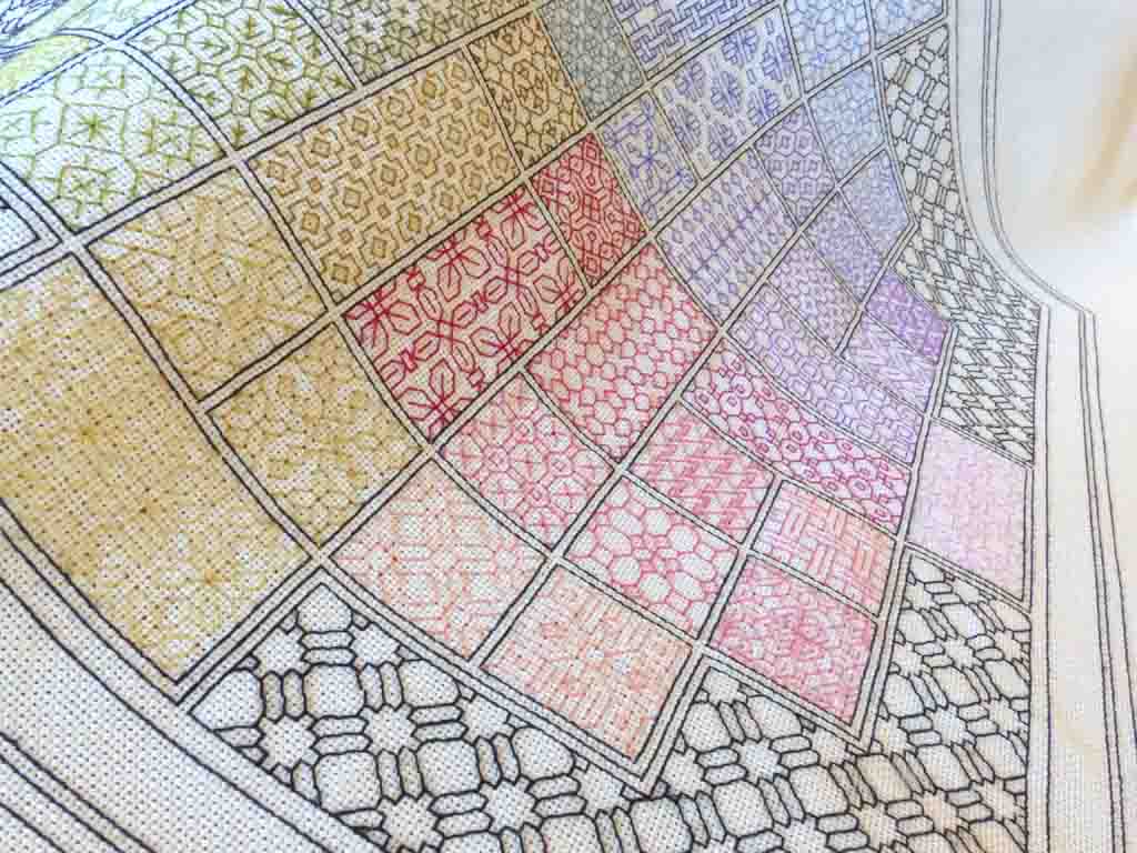 J'ai toujours vécu le blackwork comme une technique de broderie relaxante et particulièrement agréable, offrant à chaque fois un résultat surprenant en plus. Les photos des ouvrages réalisés du SAL sur la page Facebook de Peppermint Purple en témoignent.